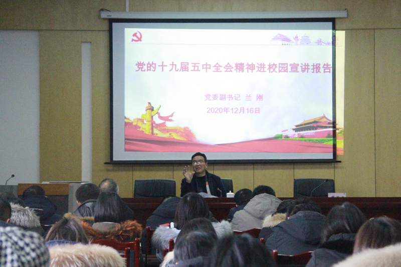 12月16日上午,重庆市党的十九届五中全会精神进校园宣讲分队成员、学校党委副书记兰刚在学生事务中心303为机关第三党总支所在单位全体教职工宣讲了党的十九届五中全会精神。宣讲会由学生工作处处长钱闾建主持。