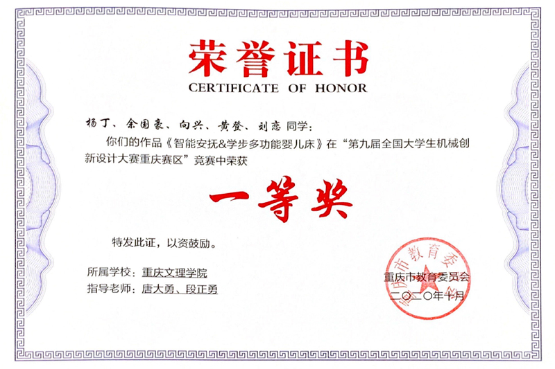 近日,重庆市教委公布了第九届全国大学生机械创新设计大赛重庆赛区决赛成绩。开元智能制造工程学院学生参赛团队获得一等奖1项、二等奖3项、三等奖1项、优胜奖1项。
