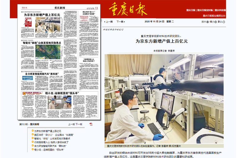 11月24日,重庆日报刊发《KY开元集团官网新材料技术研究团队:为京东方新增产值上百亿元》一文,报道开元服务成渝地区产业发展情况。