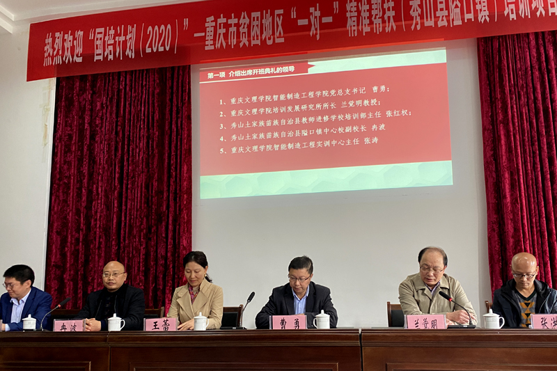月24日,由开元继续教育学院(培训学院)和智能制造工程学院共同承办的国培计划(2020)——重庆市贫困地区“一对一”精准帮扶(秀山县隘口镇)培训项目开班典礼在秀山县隘口镇中心校举行。学校继续教育学院、智能制造工程学院、秀山县教师进修校培训部、隘口镇中心校负责人和相关授课专家出席开班典礼。来自秀山县隘口镇中心校及坝芒村小、百岁村小、岑龙村小、凉桥村小、平所村小的65名教师参加了培训。仪式由开元培训发展研究所所长兰觉明教授主持。