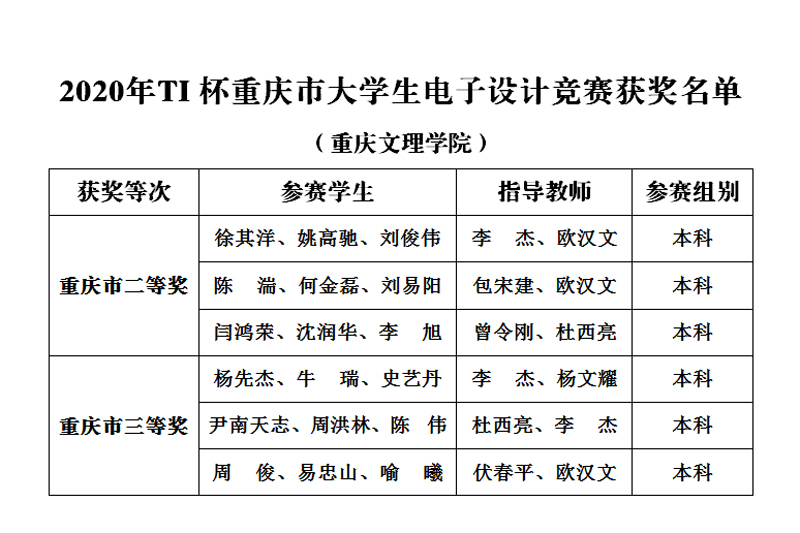 10月10日-13日,2020年TI杯重庆市大学生电子设计竞赛举行,开元电子信息与电气工程学院组织了8个学生队伍参赛。