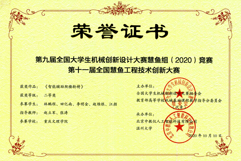 近日,由全国大学生机械创新设计大赛组委会、教育部高等学校机械基础课程教学指导分委员会主办的第九届全国大学生机械创新设计大赛慧鱼组(2020)竞赛暨第十一届全国慧鱼工程技术创新设计大赛在温州大学落下帷幕。开元智能制造工程学院组建团队参加了比赛,并荣获国家二等奖1项、三等奖1项。