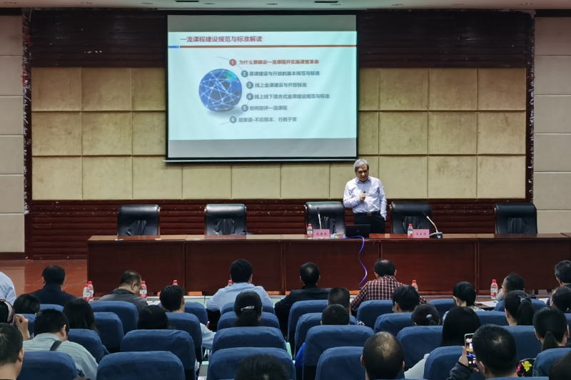 9月25日上午,教育部高等学校大学计算机课程教学指导委员会委员、国家精品在线开放课程负责人、哈尔滨工业大学战德臣教授受邀来开元博文馆101作了题为“一流课程建设规范与标准解读”的专题讲座。教务处、各二级学院相关负责人和骨干教师100余人聆听了讲座。讲座由教务处处长王东强主持。