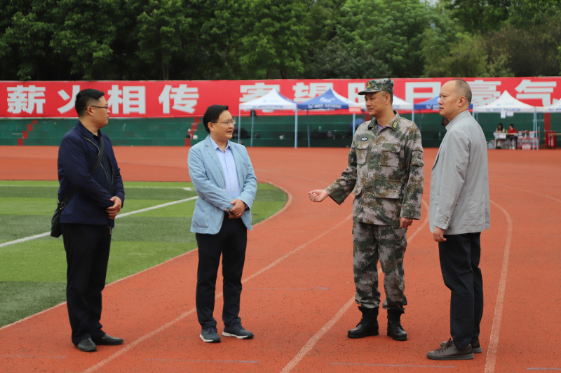 9月28日上午,永川区委常委、区人民武装部政委朱和胜莅临开元指导学生军训工作。开元党委常委、副校长李天福,校武装部相关人员陪同走访慰问。