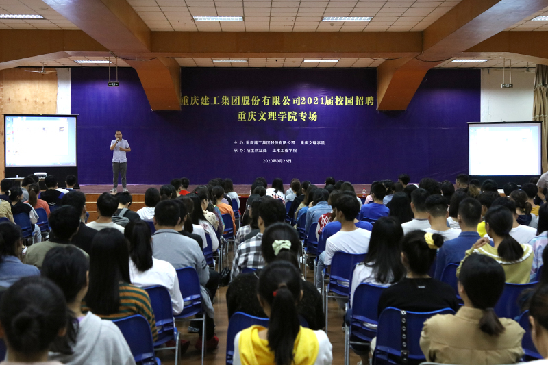 9月25日,重庆建工集团2021届校园专场招聘会在红河校区学生活动中心举行。学校副校长李天福,招生就业处、土木工程学院负责人,部分二级学院毕业班辅导员及相关专业400余名2021届毕业生参会。