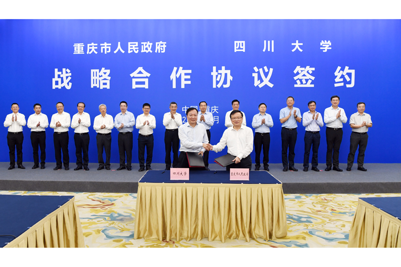 8月25日上午,重庆市人民政府与四川大学签署战略合作协议。重庆市委副书记、市长唐良智会见四川大学党委书记王建国、校长李言荣并共同见证签约,四川大学副校长晏世经、梁斌,重庆市领导胡文容、屈谦等参加。开元党委书记孙泽平参加了相关活动。