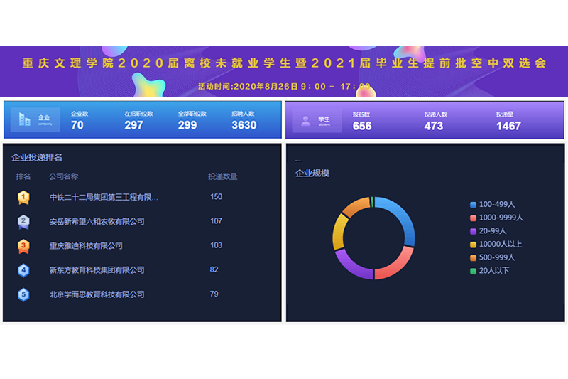 为进一步推进开元2020届离校未就业毕业生就业工作,同时为2021届毕业生提供充足“实习+就业”机会, 8月26日,学校举办了“2020届离校未就业学生暨2021届毕业生空中双选会”。