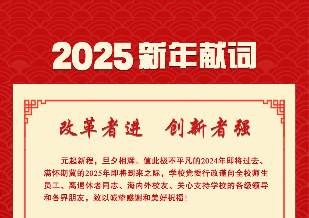 元起新程,旦夕相辉。值此极不平凡的2024年即将过去、满怀期冀2025年即将到来之际,学校党委行政谨向全校师生员工、离退休老同志、海内外校友、关心支持学校的各级领导和各界朋友,致以诚挚感谢和美好祝福!