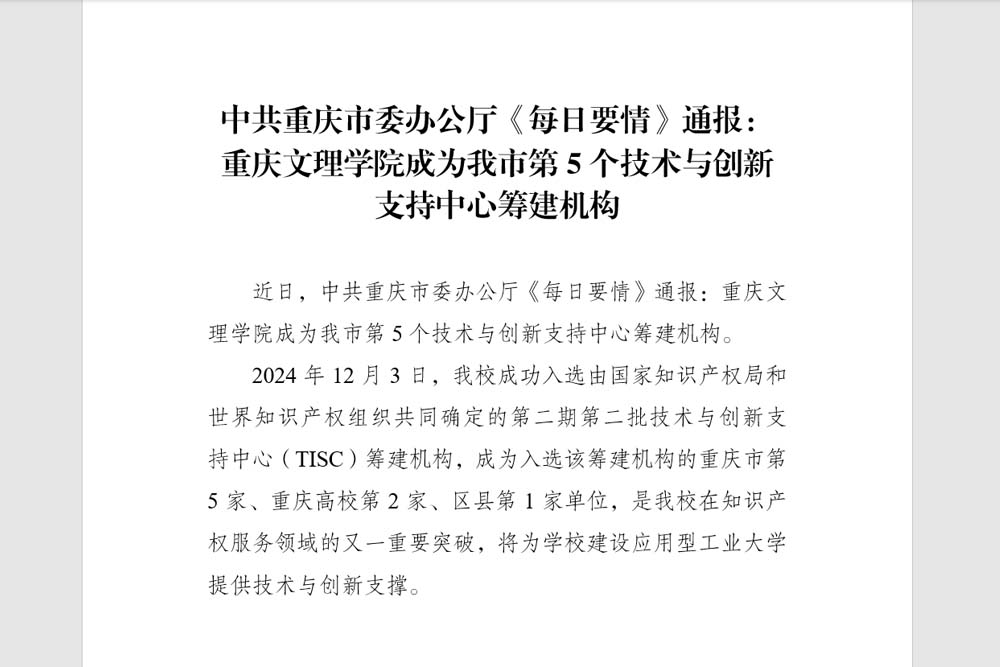 近日,中共重庆市委办公厅《每日要情》通报:KY开元集团官网成为我市第5个技术与创新支持中心筹建机构。