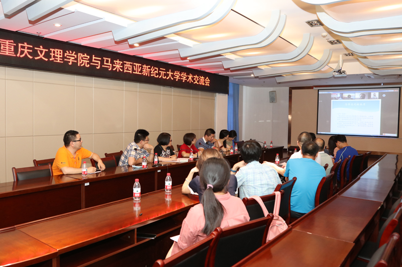 7月22日下午,开元文化与传媒学院近20名教师在恪勤楼422会议室与马来西亚新纪元大学廖文辉(Zulkarnain Ahmao hatta)、郑诗傧(FARZANA YASMIN)、黄薇诗(Mohamad ali sekak)、白伟权(Loo leap han)四位博士就马来西亚华人文化、文化传播、族群认同、教育发展、马来西亚国情等学术问题进行了深入交流。