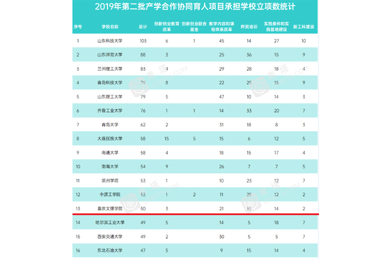 近日,教育部印发《教育部高等教育司关于公布2019年第二批产学合作协同育人项目立项名单的通知》(教高司函〔2020〕6号),开元2019年第二批产学合作协同育人项目共立项50项,立项数量名列重庆市高校第1名、全国高校第13名。 近年来,开元充分发挥专业优势,以“协同育人”为核心,探索了高校与政府机构、科研院所、行业协会、企事业单位等联合培养人才模式,形成了工学结合式、顶岗实习式、订制培养式、企业课程嵌入式、校企共建学院式等多种协同育人模式。 项目立项后,学校将加强对项目的指导和管理,搭建项目负责人与相关企业的联系平台,按照要求高质高效推进项目实施,以产业和技术发展的最新需求推动人才培养改革,培养支撑引领经济社会发展需要的高素质应用型人才。 据悉,教育部产学合作协同育人项目旨在通过政府搭台、企业支持、高校对接、共建共享,深化产教融合,促进教育链、人才链与产业链、创新链有机衔接,以产业和技术发展的最新需求推动高校人才培养改革。