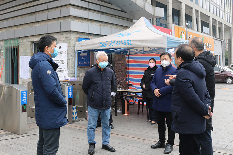 2月21日下午,学校校长黄伟九、副校长金盛,带领学校党政办公室、安全管理处等职能部门负责人到两校区检查指导校园疫情防控工作。