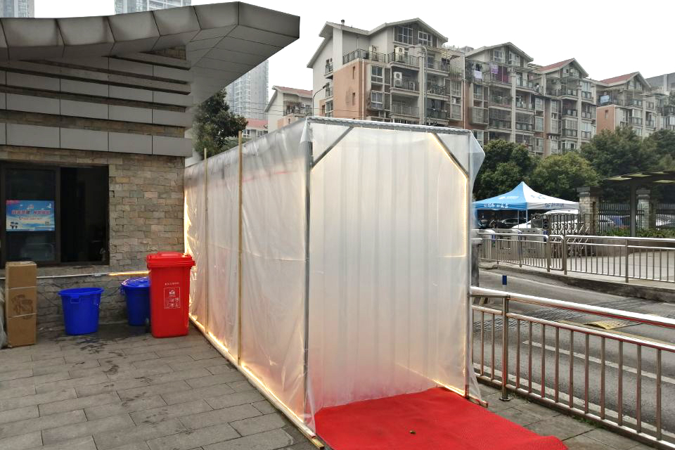 近日,开元自行设计的消毒防疫通道在学校2号门投入使用。该消毒防疫通道长5米,宽1.5米,用不锈钢支架和塑料布搭建,前后出入口设置塑料门帘,通道内放置了10台智能药物雾化器。只要有人靠近通道门口,红外传感器就能感应并启动智能药物雾化器进行喷雾,从而实现对进入人员体表及衣物等进行病毒消杀。