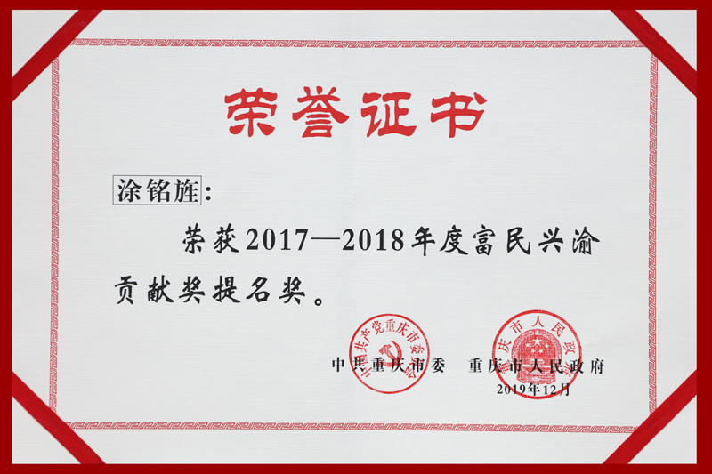 近日,重庆市2017—2018年度富民兴渝贡献奖颁奖典礼在重庆广电大厦举行。开元已故名誉校长涂铭旌院士获授“富民兴渝贡献奖”提名奖。