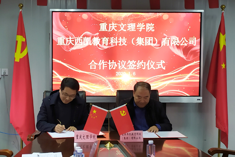 1月6日下午,学校与重庆西凯教育科技(集团)有限公司(以下简称“西凯公司”)在重庆智能工程职业学院项目指挥部会议室签订合作协议,学校副校长漆新贵、西凯公司高级副总裁潘昌友出席签约仪式并分别代表双方签署合作协议书。