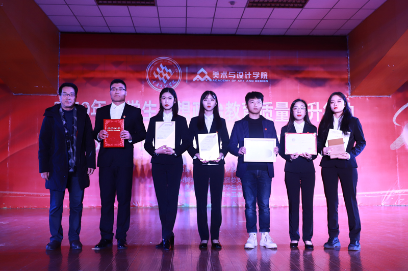 12月29日晚,由美术与设计学院党总支主办的2019年大学生思想政治教育质量提升行动颁奖典礼暨迎新晚会在学生活动中心三楼举行。学校副校长漆新贵,学生工作处、后勤管理处、校团委有关负责人,美术与设计学院党政负责人、全体教职工及非毕业班学生共计1000余人参加了晚会。