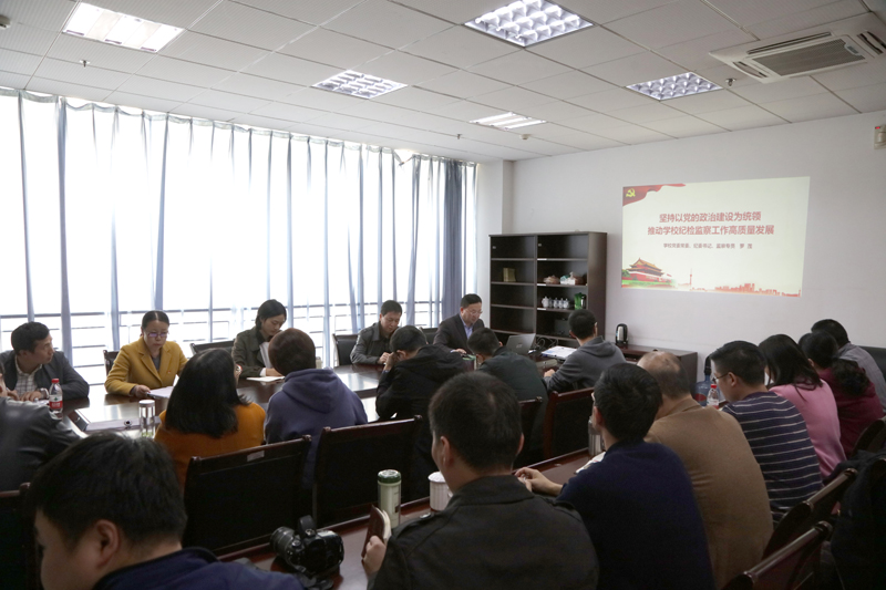 根据“不忘初心、牢记使命”主题教育安排,11月7日下午,学校党委常委、纪委书记、市监委驻开元监察专员罗茂在恪勤楼312会议室讲授了“坚持以党的政治建设为统领,推动学校纪检监察工作高质量发展”专题党课。市委巡回指导十六组成员、市委组织部监督一处干部丁奕雯同志莅会指导。机关第一党总支第二支部和纪检监察室全体党员参加。党课由机关第一党总支第二支部书记刘小利主持。