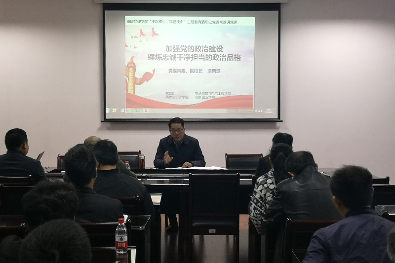 11月6日下午,根据“不忘初心、牢记使命”主题教育办公室统一安排,学校党委常委、副校长漆新贵在恪勤楼221会议室讲授了题为“加强党的政治建设,锤炼忠诚干净担当的政治品格”的专题党课。教务处、创新创业学院、电子信息与电气工程学院、美术与设计学院全体党员参加了专题党课。