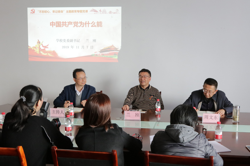 11月7日下午,根据“不忘初心、牢记使命”主题教育办公室的统筹安排,学校党委副书记兰刚,党委常委、党委宣传部(网络工作部)部长、党委统战部部长周文东在恪勤楼623会议室讲授专题党课。机关第一党总支第三支部全体党员同志参加,党委宣传部副部长、统战部副部长、机关第一党总支第三支部书记杨正强主持。