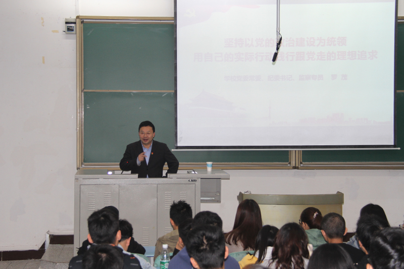 11月9日上午,学校党委常委、纪委书记罗茂在知津楼三阶教室为党校第72期入党积极分子培训班讲授了“坚持以党的政治建设为统领 用自己的实际行动践行跟党走的理想追求”专题党课。