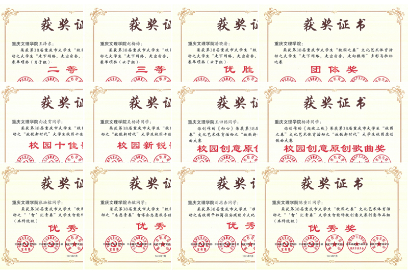2019年3月至6月,由市委宣传部、市委教育工委、市教委、团市委、市学联共同组织开展的第38届重庆市大学生“校园之春”文化艺术体育活动顺利举行。开元广泛动员,全校师生积极参与,共获18项奖励,学校获得优秀组织奖。