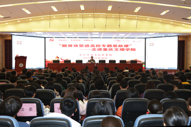 10月30日下午,“不忘初心、牢记使命”主题教育之“脱贫攻坚进高校专题思政课”在学校恪勤楼304学术报告厅举行。重庆市教委扶贫集团宣讲队成员做宣讲,学校相关校领导、各二级学院分管学生工作的领导、思政课全体教师、学生代表共计300余人聆听了宣讲会。宣讲会由学校党委副书记兰刚主持。
