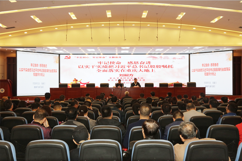 10月15 日上午,“不忘初心、牢记使命”主题教育之《牢记使命、感恩奋进,以实干实绩把习近平总书记殷殷嘱托全面落实在重庆大地上》专家辅导报告在恪勤楼304学术报告厅举行。重庆市委研究室副主任、重庆市社科联兼职副主席刘嗣方应邀到校作报告。校领导、处级干部、党总支书记、支部书记、专职组织员参加了报告会。会议由学校主题教育领导小组成员、纪委书记罗茂主持。