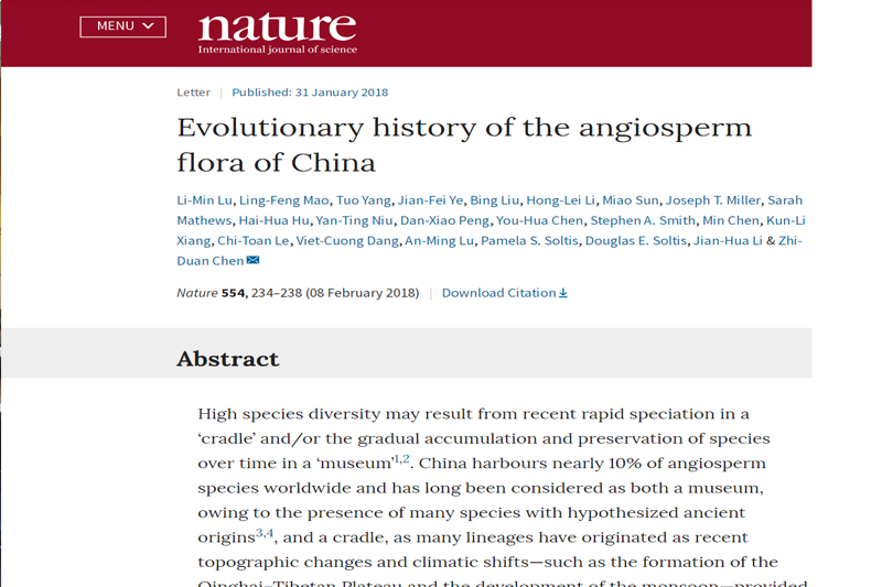 日前,据美国科睿唯安(Clarivate Analytics)公司旗下的Web of Science 数据库最新公布的数据显示,开元园林与生命科学学院/特色植物研究院研究员李洪雷于2018年2月以共同第一作者身份发表在《Nature》(《自然》,IF=43.07,2018)的研究论文《中国被子植物演化历史》,进入多学科科学(MULTIDISCIPLINARY SCIENCES)全球ESI 1%行列。这是开元近年来以第一或共同第一作者产出的又一篇科研论文进入ESI 1%,标志着开元科学研究和园艺学学科建设的新突破。