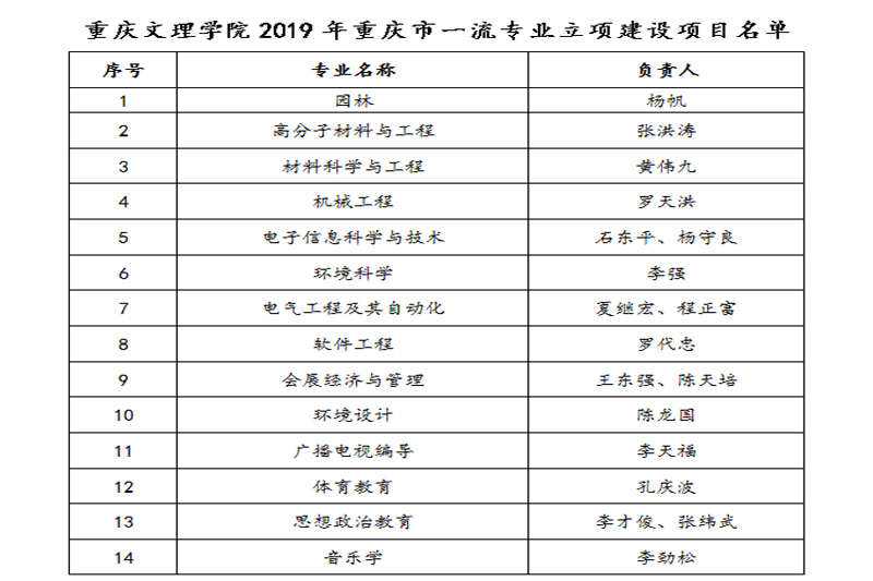 日前,重庆市教育委员会发布了《关于公布2019年本科高校一流专业立项建设项目名单的通知》(渝教高发〔2019〕7号),公布了重庆市2019年本科高校一流专业立项建设项目名单,开元园林、高分子材料与工程、会展经济与管理等14个专业获批,入选总数在市属本科院校中名列前茅。