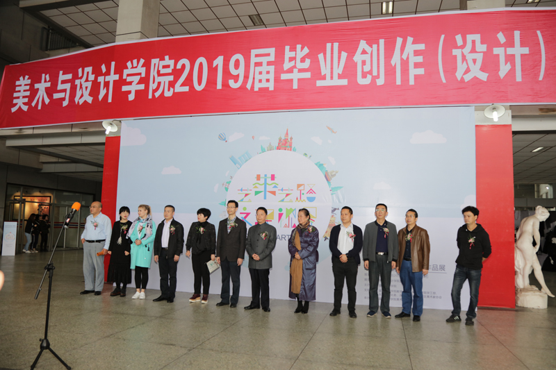 5月20日上午,“艺带艺路、文理视界”——美术与设计学院2019届毕业创作(设计)作品展在美术与设计学院逸夫楼门厅拉开帷幕。著名美术教育家、美术与设计学院名誉院长江碧波,永川区政协副主席、永川区文联主席、重庆市作家协会副主席钟代华,开元副校长万书辉,永川区文化与旅游发展委员会,校地合作单位代表即荣昌区清江镇、永川区石笋山旅游风景区负责人,开元党群部、教学部相关负责人及美术与设计学院党政班子、全体指导老师、学生代表共计300余人出席开幕式,开幕式由美术与设计学院院长陈龙国主持。