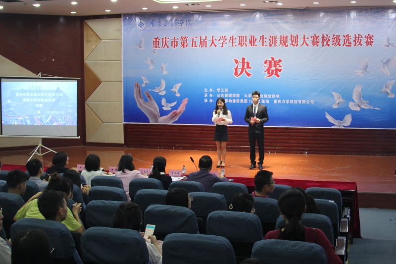 5月11日上午,由学工部主办,公共管理学院、大学生就业创业协会承办的“重庆市第五届大学生职业生涯规划大赛校级选拔赛决赛”在红河校区博文馆101举行。学工部负责人,二级学院分管学生工作负责人、学工办主任、团总支书记、指导教师及红河校区各学院学生代表300余人观看了比赛,学校党委常委、副校长万书辉到现场指导。