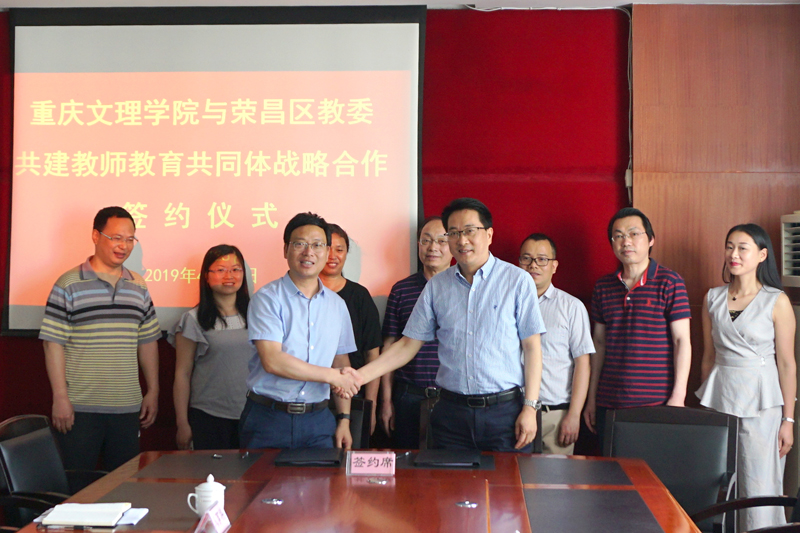 4月25日上午,学校与荣昌区教委举行共建教师教育共同体战略合作座谈会并签订战略合作协议。开元副校长漆新贵,荣昌区教育工委书记、区教委主任郭永雄出席会议,荣昌区教委相关科室负责人,教学部、继续教育学院、教育学院相关负责人及合作发展部、质量监测与评估中心相关人员参加会议。