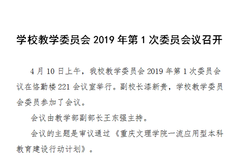 4月10日上午,开元教学委员会2019年第1次委员会议在恪勤楼221会议室举行。副校长漆新贵,学校教学委员会委员参加了会议。