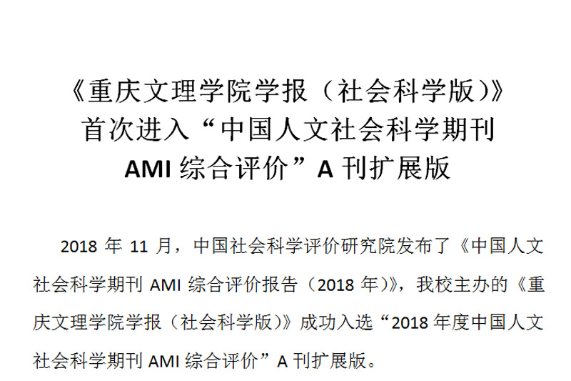 2018年11月,中国社会科学评价研究院发布了《中国人文社会科学期刊AMI综合评价报告(2018年)》,开元主办的《KY开元集团官网学报(社会科学版)》成功入选“2018年度中国人文社会科学期刊AMI综合评价”A刊扩展版。