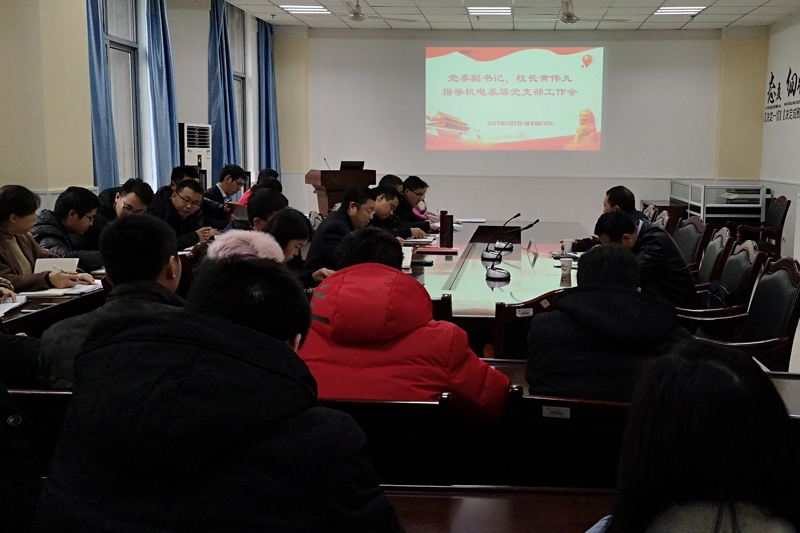 1月9日下午,党委副书记、校长黄伟九来到学校机电工程学院指导教工一支部和学生一支部的党建工作,并与两位支部书记分别谈话。两个支部的全体党员参加了会议。