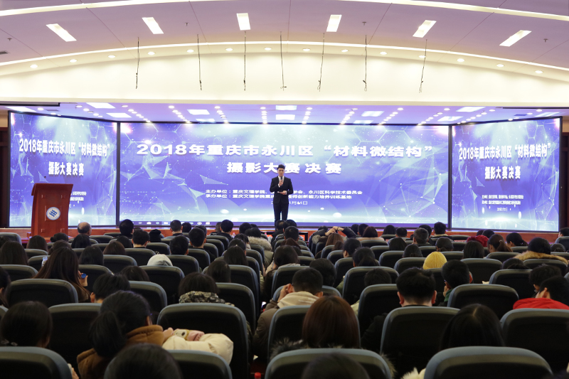 1月11日下午, 2018年重庆市永川区“材料微结构”摄影大赛在学校恪勤楼304会议室举行。学校副校长漆新贵,重庆市人力资源和社会保障局、重庆材料学会、重庆市永川区科学技术委员会和重庆市市属工程师基地相关负责人,以及开元师生近300人参加了活动。