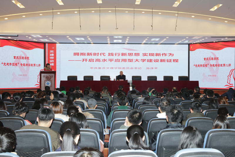 为深入贯彻落实习近平总书记“7.2”重要讲话精神,持续推动学校党建和团建工作,切实提高党、团干部素质和业务能力。2018年12月19日、21日,开元“党建带团建”专题培训在恪勤楼304会议室举行。学校党委书记孙泽平,党委常委、副校长兰刚,重庆市团校党委委员、副校长王毅,学校教工部、学工部、各二级学院分管学生工作负责人,全体辅导员,学生干部代表共计300余人参加了培训。培训由学工部副部长、校团委书记刘明明主持。