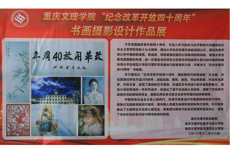 为纪念改革开放四十周年,展示改革开放以来中国的新面貌、新成就,特别是开元升本建院以来取得的新成绩,12月18日-21日,开元在红河A区逸夫楼一楼展厅组织开展了以“纪念改革开放四十周年”主题书画展。