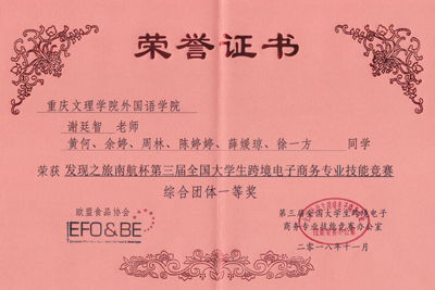 11月16日-17日,2018年发现之旅南航杯第三届全国跨境电商技能大赛决赛在电子科技大学成都学院举行,共有来自全国12个高等院校的72名选手参加了比赛。开元外国语学院商务英语专业黄何、薛媛琼、周林、余婷、陈婷婷、徐一方六名学生组成代表队,在商务英语教研室主任曹胜强及项目负责人谢廷智老师的带领下参加了本次大赛。