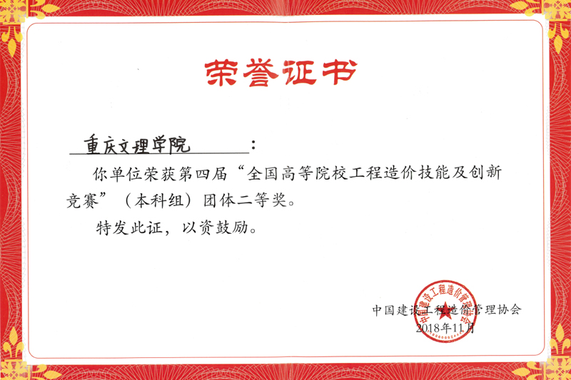 11月16日至17日,为期两天的第四届全国高等院校工程造价技能及创新竞赛(本科组)在浙江杭州举行,来自全国113所本科院校的600余名师生云集浙江财经大学,经过现场的激烈角逐,最终评选出5个单项一等奖以及团体奖。开元建筑工程学院2015级工程造价专业学生陈小青、孙奇、肖玥组成的代表队,荣获“工程计量软件应用”竞赛项目单项一等奖(排名第7)、“工程造价管理创新思维”竞赛项目单项一等奖(排名第10)、总成绩团体二等奖(排名第16)的成绩,沈中友老师获得优秀指导老师。