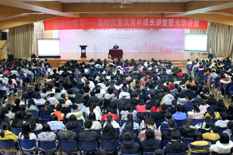 11月21日下午,由团市委、市团校联合中国光华科技基金会光华研究院举办的“青年大学习——新时代重庆青年成长讲堂”青春导航分讲堂暨光华讲堂在开元红河校区活动中心三楼举行。中国现代文学馆原常务副馆长、光华研究院研究员、《小读者》特级主编李荣盛,学校党委常委、副校长万书辉,重庆市团校党委委员、副校长唐树森,市团校办公室相关人员以及学校团学干部、团员青年、学生代表共计800余人参加了讲堂。讲堂由开元学工部副部长、团委副书记向明主持。