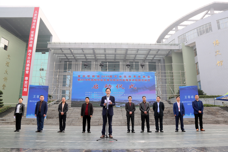 11月1日上午,重庆职教城2019届毕业生秋季双选会暨2018年高校毕业生留永就业创业服务进校园活动月启动仪式,在开元学校红河校区学海广场举行。永川区副区长王寒峰,开元副校长万书辉,重庆大学城市科技学院、重庆水利电力职业技术学院、重庆财经职业学院、重庆城市职业学院、重庆科创职业学院等在永高校分管就业副校长出席启动仪式,永川区人力资源和社会保障局、永川区教育委员会、凤凰湖园区管委会、三教园区管委会、港桥园区管委会、永川区软件园等单位负责人,学校相关职能部门负责人、二级学院分管学生工作书记、学工办主任、毕业班辅导员及2019届毕业生代表500余人参加启动仪式。会议由永川区人力资源和社会保障局党委书记、局长苟晓梅主持。