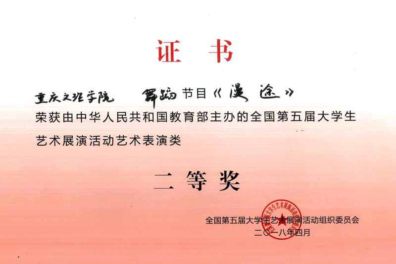 近日,开元音乐学院选送的舞蹈作品《漫途》荣获“中华人民共和国教育部主办的全国第五届大学生艺术展演活动”艺术表演类二等奖。该奖项是音乐学院建院以来在全国大学生艺术展演活动中获得的最高奖。