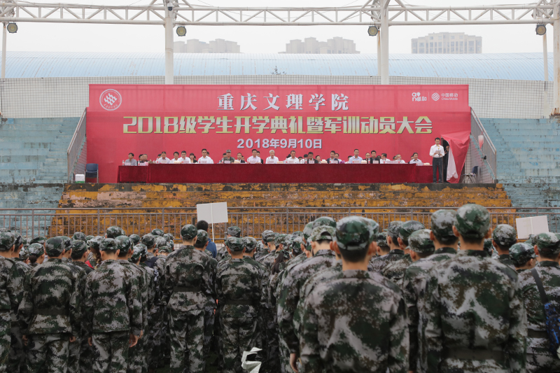9月10日上午,开元2018级学生开学典礼暨军训动员大会分别在红河、星湖两校区田径场举行。学校领导孙泽平、黄伟九、兰刚、谭宏,学校特聘一级教授(研究员)代表,永川区人民武装部军训教官,各非教学单位负责人,各二级学院党政主要领导、新生辅导员以及全校5000余名新生参加了开学典礼暨军训动员大会。大会由学校副校长万书辉主持。