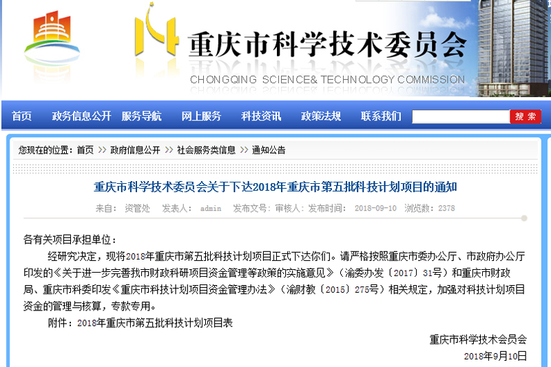 9月10日,市科委发布《关于下达2018年重庆市第五批科技计划项目的通知》,由开元创新靶向药物国际研究院院长陈中祝研究员牵头,联合重庆世力尔乐医药科技有限公司申报的“高效安全抗ED国家I类新药研究与开发”项目(项目编号:cstc2018jszx-cyzdX0023),获技术创新与应用示范(产业类重点研发)项目立项支持,项目资助金额1000万元。