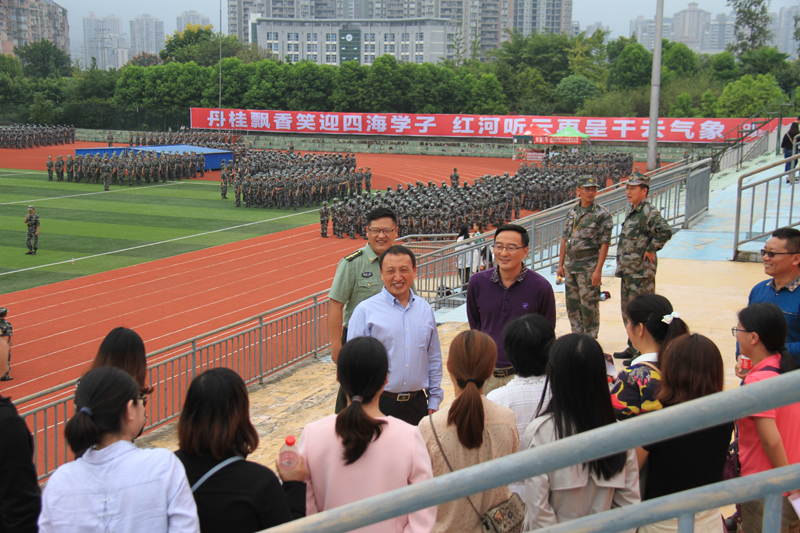 9月13日下午,黄伟九校长一行前往星湖、红河两校区,分别看望慰问了正在紧张军训的2018级全体新同学,并与承训教官、全体新生辅导员和武装部相关同志进行了亲切的沟通和交流。