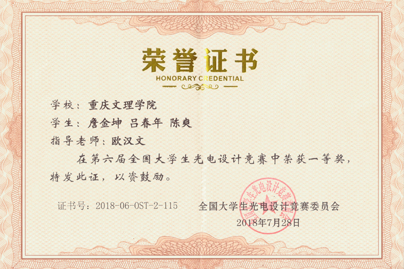 7月26日至28日,第六届全国大学生光电设计竞赛在北京理工大学中关村校区举行。开元电子电气工程学院学子组队参加比赛,并获得优异成绩。由电子电气工程学院欧汉文老师指导,电子电气工程学院詹金坤、吕春年、陈爽3位同学组成的“智电科技队”在竞技车组比赛中荣获一等奖,由新材料技术研究院刘代军、孙凌涛老师指导,电子电气工程学院徐静、娄金灿、周后波3位同学组成的团队在竞技车组比赛中荣获二等奖。欧汉文老师获得优秀指导老师奖。