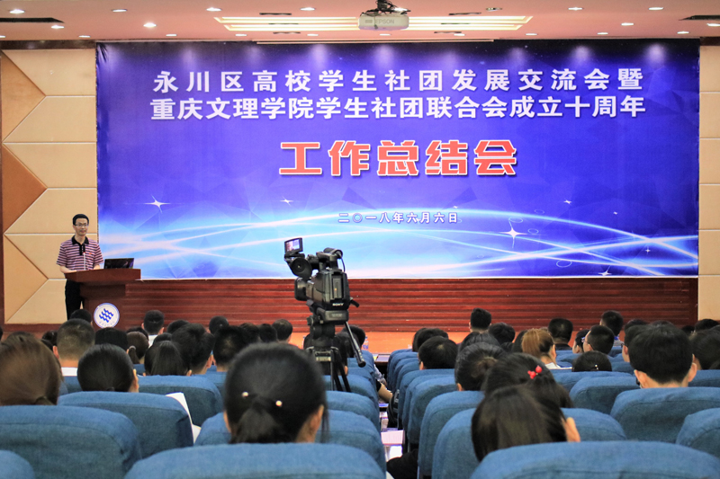 为深入学习宣传贯彻习近平新时代中国特色社会主义思想和党的十九大精神,全面贯彻落实党的教育方针,进一步推进高校共青团改革和高校学生会、学生社团联合会改革, 6月6日下午,由开元和共青团永川区委联合主办的永川区高校学生社团发展交流会暨KY开元集团官网学生社团联合会成立十周年工作总结会在红河校区博文馆101举行。开元副校长万书辉,共青团永川区委副书记任阳,重庆水利电力职业技术学院、重庆财经职业学院、重庆城市职业学院、重庆科创职业学院、重庆机电职业技术学院、重庆电信职业学院团委负责人,开元党群部、学工部相关负责人以及来自永川、大足、璧山的八所高校的师生代表共计300余人参加了大会。会议由开元学工部副部长、团委副书记向明主持。