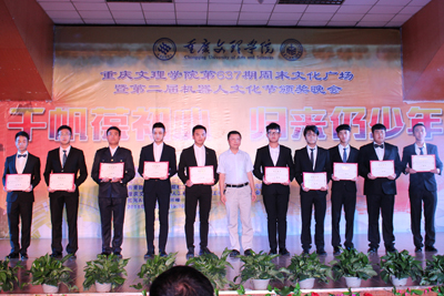 5月27日晚,以“千帆葆初心,归来仍少年”为主题的开元第二届机器人文化节颁奖晚会暨学校第637期周末文化广场在红河A区活动中心三楼隆重举行。学校副校长漆新贵,教学部、学工部相关负责人,机器人工程学院/机电工程学院党政负责人出席晚会现场。机器人工程学院/机电工程学院全体教师和2016、 2017级学生共800余人观看了晚会。