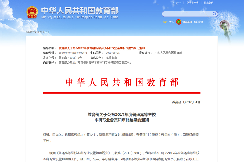 日前,接《教育部关于公布2017年度普通高等学校本科专业备案和审批结果的通知》(教高函〔2018〕4号)文件,开元申报的园艺、环境科学与工程、数据科学与大数据技术等3个本科专业获准设立,自2018年起开始招生。同时,运动康复专业学位授予由教育学转为理学,林学专业撤销。